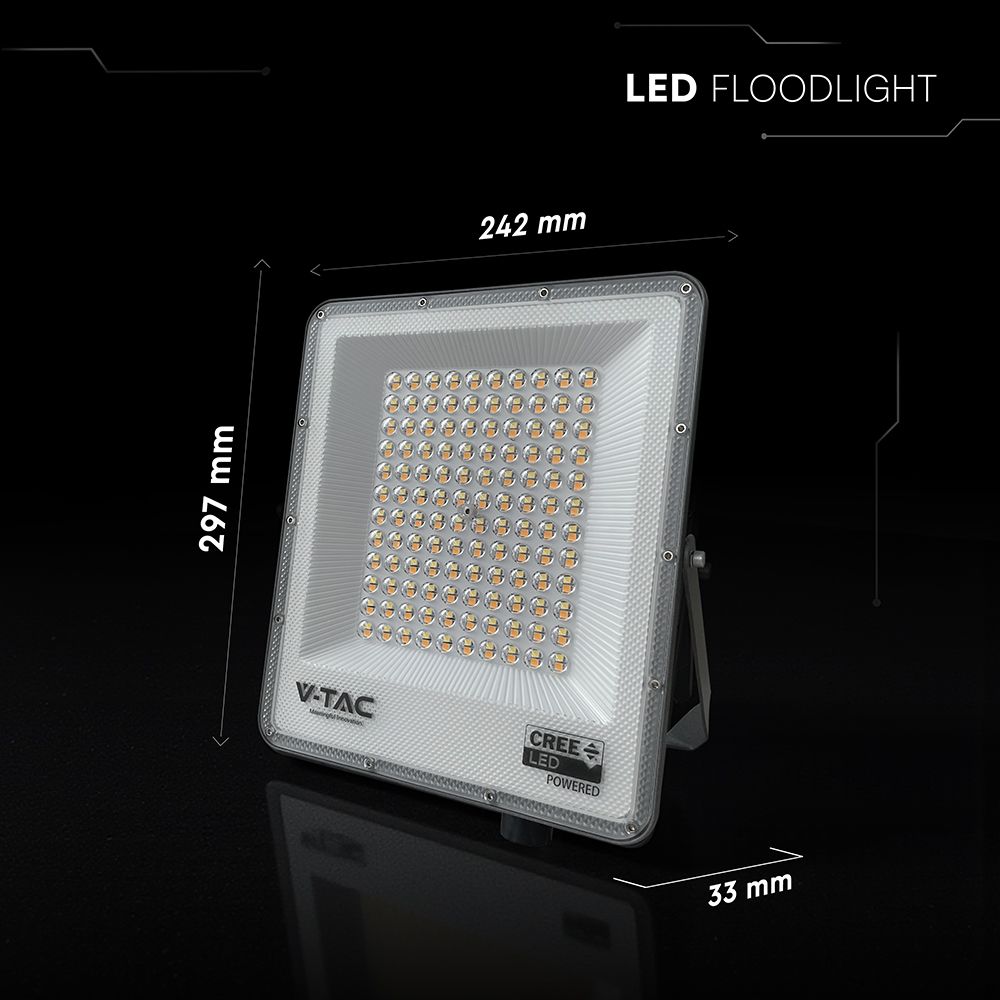 LED Προβολέας 100W Αδιάβροχος IP65 V-TAC Cree Chip Μαύρος 8150lm CCT 6yrs Wty – 240716