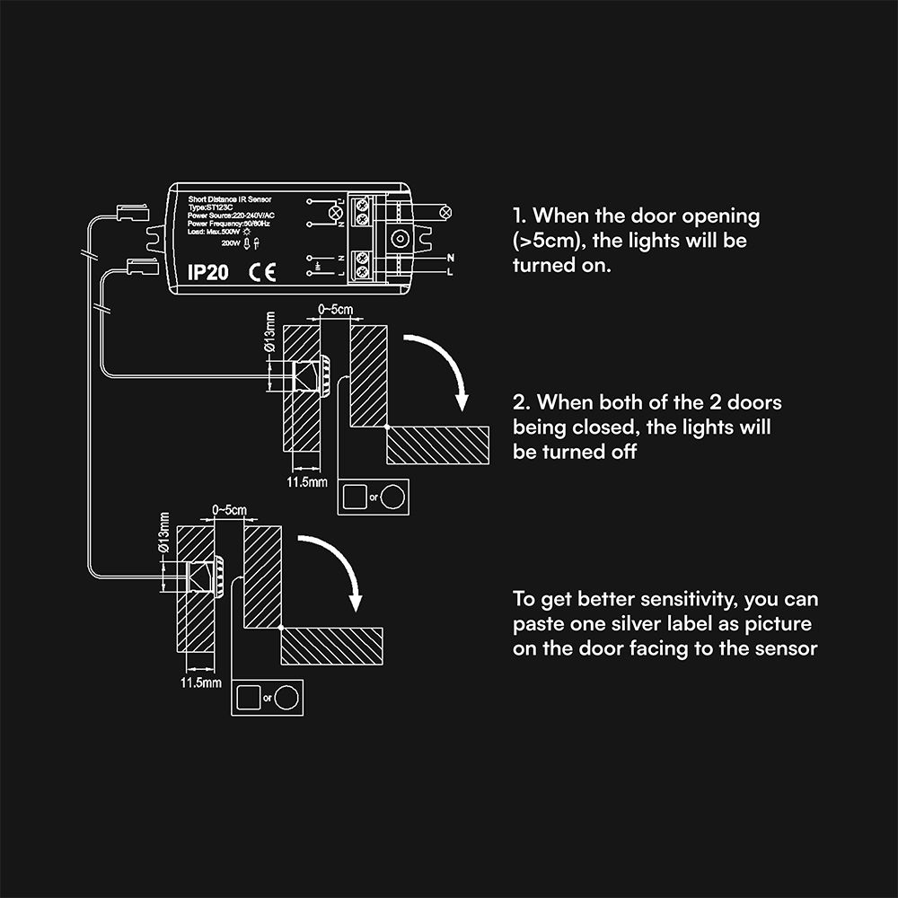 Ο αισθητήρας μπορεί να τοποθετηθεί σε ντουλάπες, ντουλάπια κουζίνας ή έπιπλα ώστε το φως να ανάβει αυτόματα όταν ανοίγει η πόρτα.