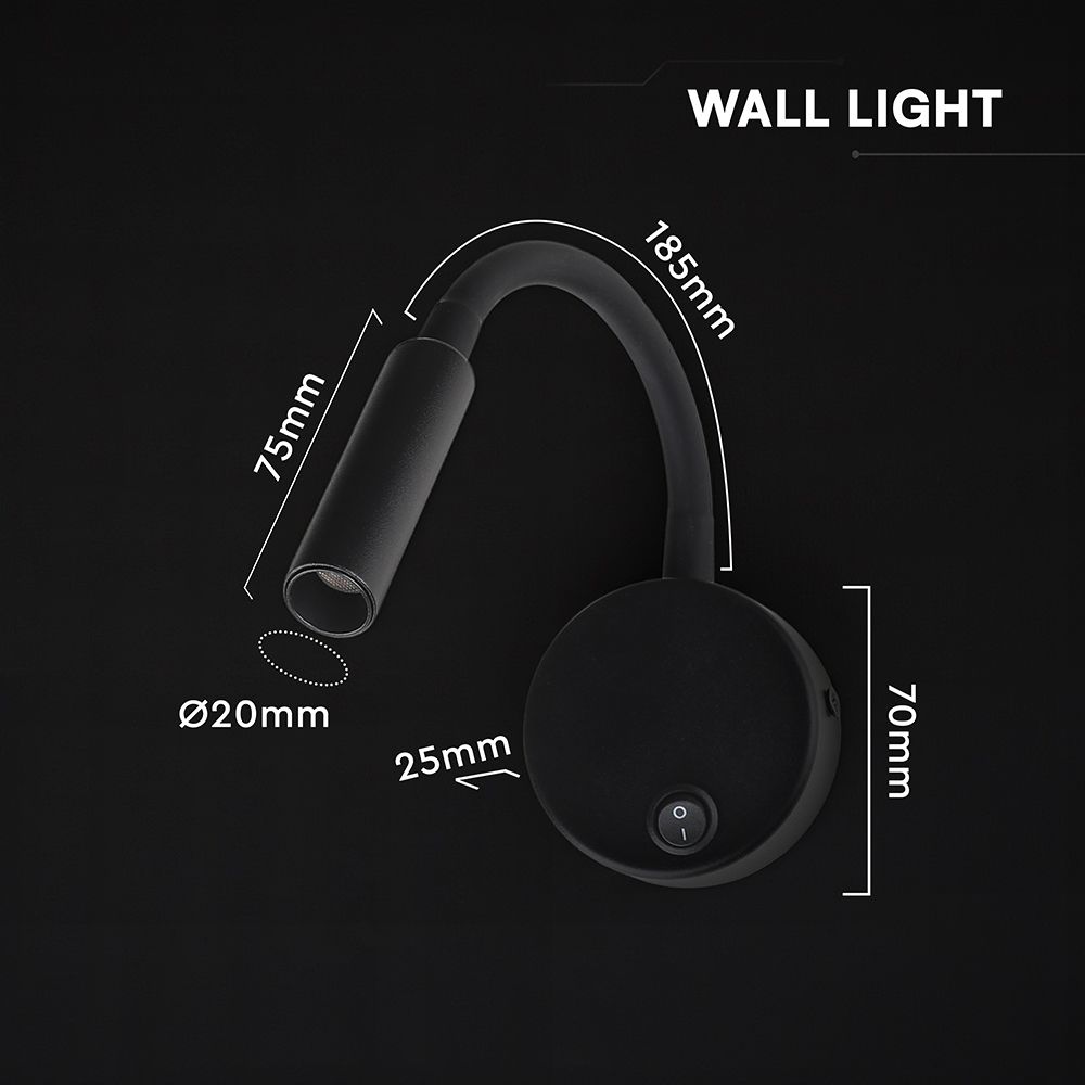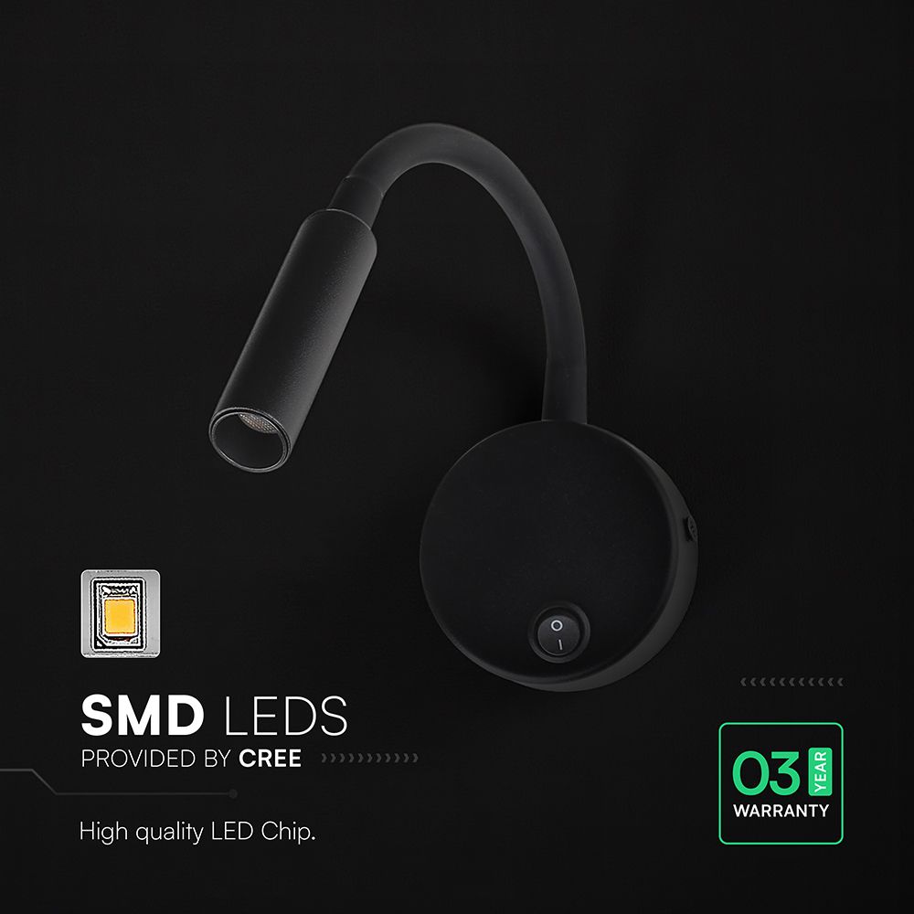 LED Φωτιστικό Ανάγνωσης Κρεβατιού Μαύρο V-TAC Cree Chip Θερμό Λευκό 3000K V-TAC – 241506