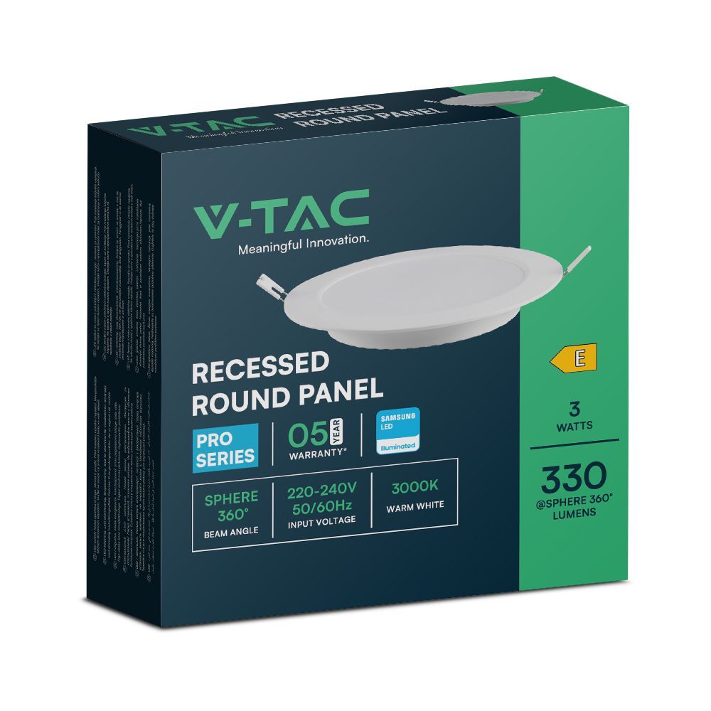 3W LED Panel V-TAC SAMSUNG Chip Χωνευτό Κυκλικό Φ9cm 330lm 4000K V-TAC – 78561