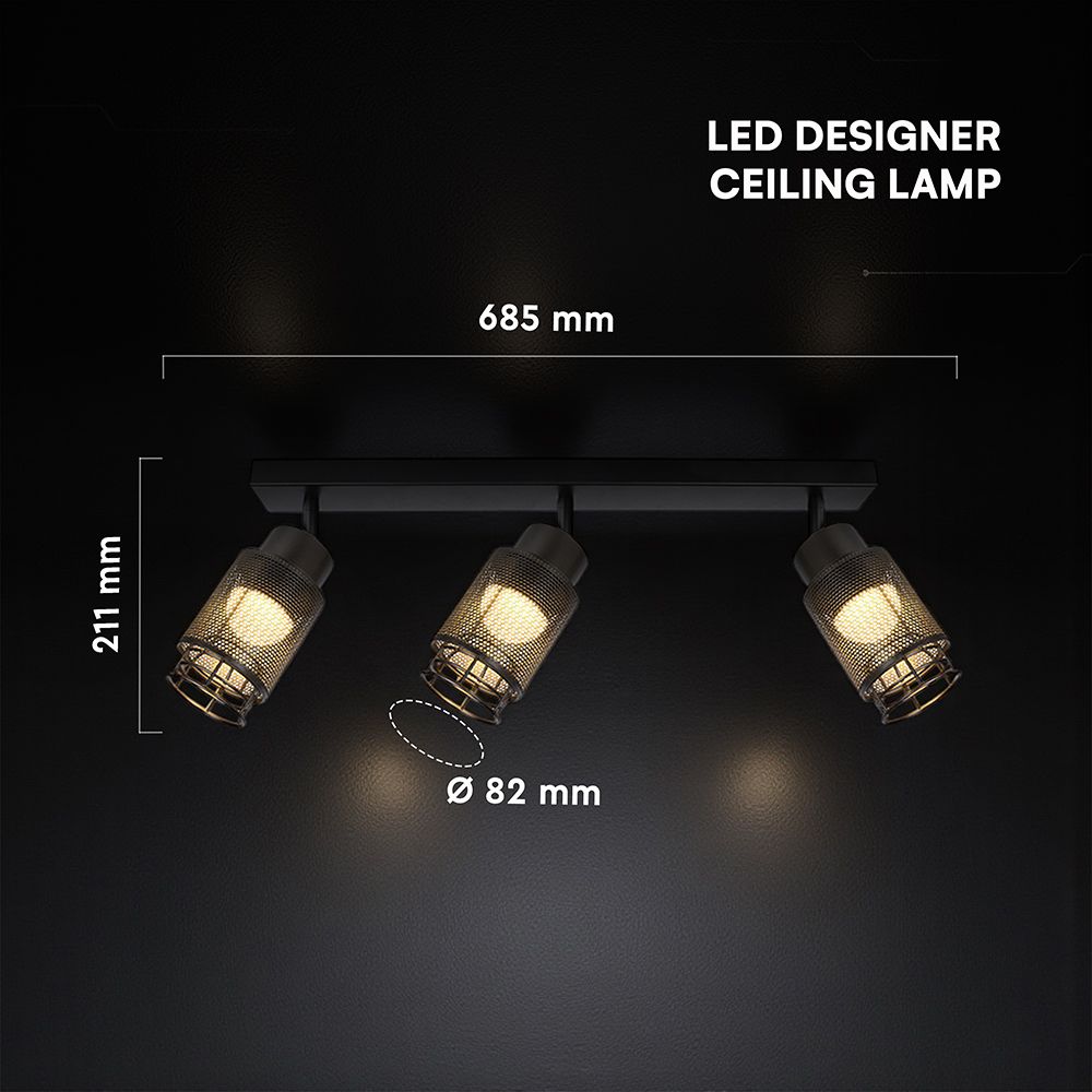 V-TAC – 24121 LED Decorative Πολύφωτο με 3 Σποτ 18W 2160lm 3000K Μαύρο Ματ