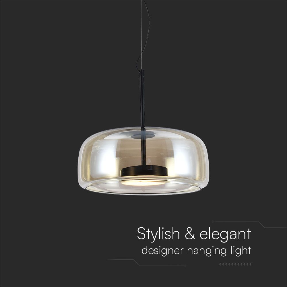 6W LED Designer Κρεμαστό Φωτιστικό Μαύρο Μέταλλο+Γυαλί Κεχριμπάρι Φ350 3000K V-TAC – 23378