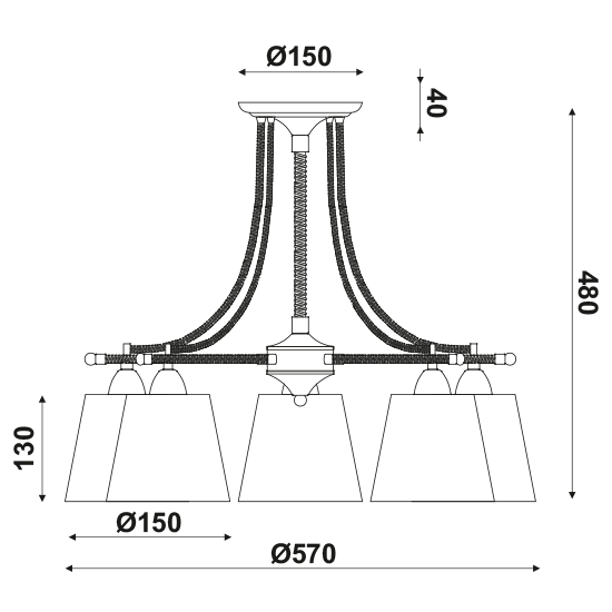 ACA Φωτιστικό Οροφής 5ΧΕ14 Μεταλλικό Μαύρο + Σχοινί + Μπεζ Αμπαζούρ Φ57ΧΗ48cm