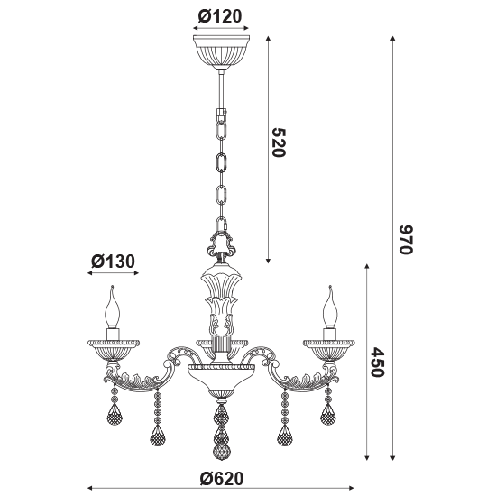 ACA Κρεμαστό Φωτιστικό 3ΧΕ14 Μεταλλικό Χρώμιο + Κρύσταλλο Φ62ΧΗ97cm