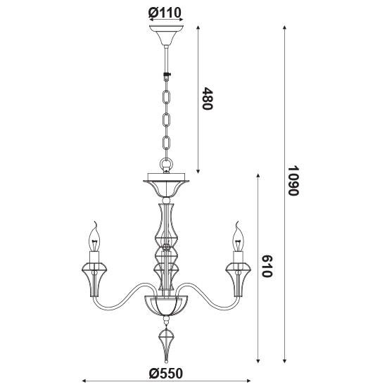 ACA DECOR - Κρεμαστό Φωτιστικό 3ΧΕ14 Μεταλλικό Χρώμιο + Κρύσταλλο Φ62ΧΗ97cm