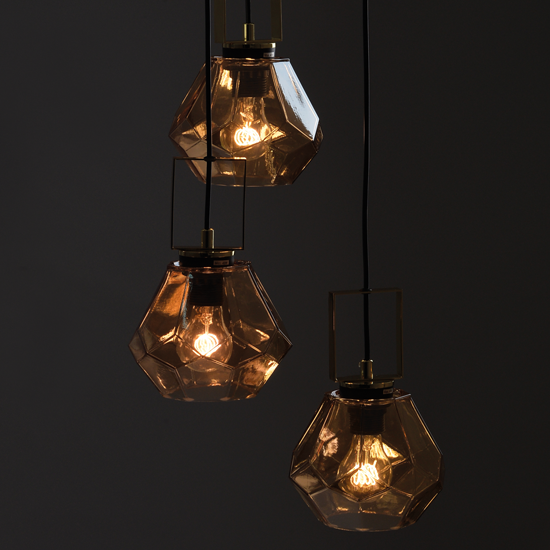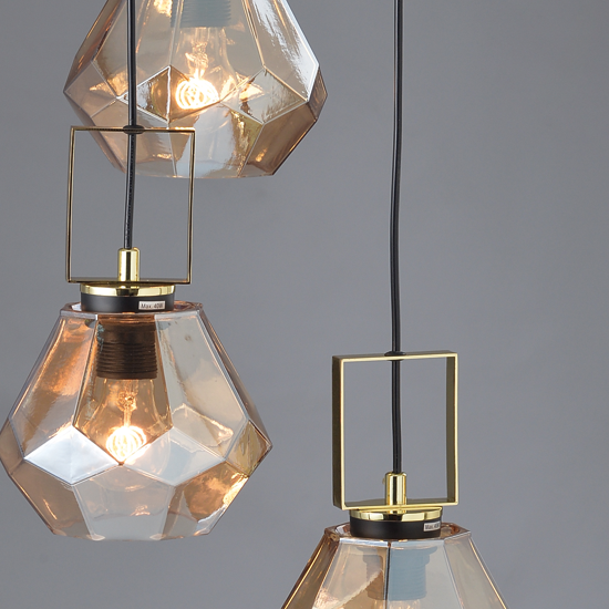 ACA Κρεμαστό Φωτιστικό 3ΧΕ27 Γυαλί Κεχριμπάρι + Ορείχαλκο Μέταλλο Φ30ΧΗ101cm