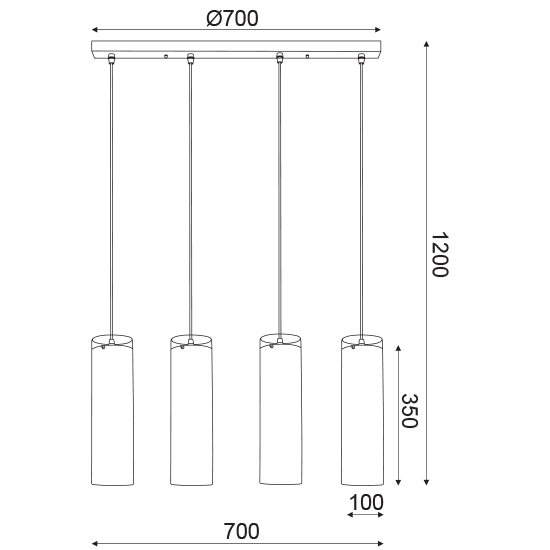 ACA Κρεμαστό Φωτιστικό 4ΧΕ27 Χρώμιο Γυαλί + Μέταλλο 70Χ10ΧΗ120cm