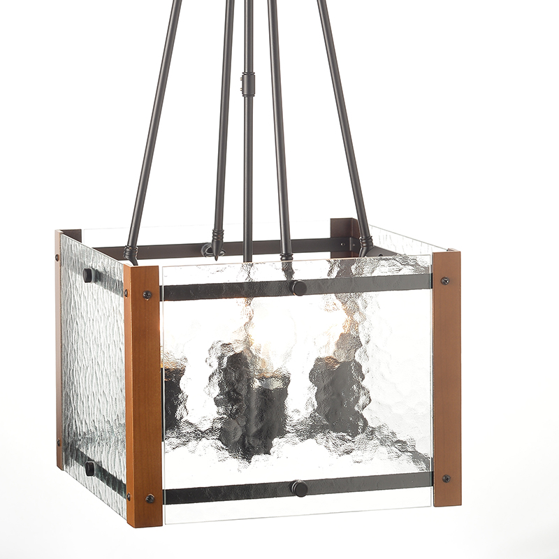 ACA Κρεμαστό Φωτιστικό 4ΧΕ27 Μέταλλο + Γυαλί+Ξύλο 33Χ33ΧΗ75cm