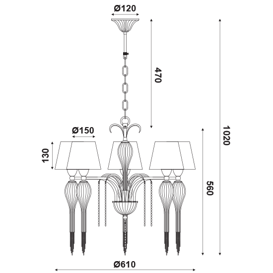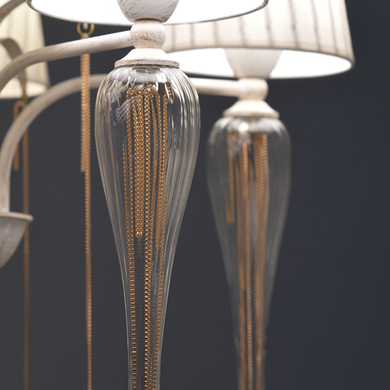 ACA DECOR – Κρεμαστό Φωτιστικό 5ΧΕ14 Μεταλλικό Λευκό-Χρυσό + Αμπαζούρ + Γυαλί + Αλυσίδα Gold Φ61ΧΗ102cm