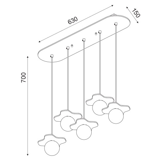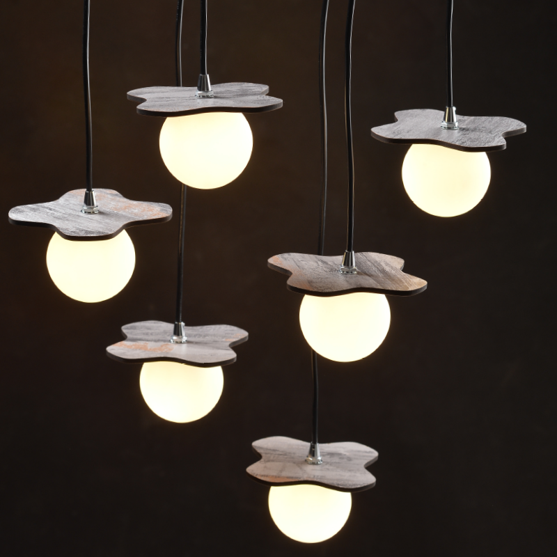 ACA Κρεμαστό Φωτιστικό 5ΧG9 Απόχρωση Παλ Ξύλο Mdf + Λευκό Γυαλί 63Χ15ΧΗ60cm