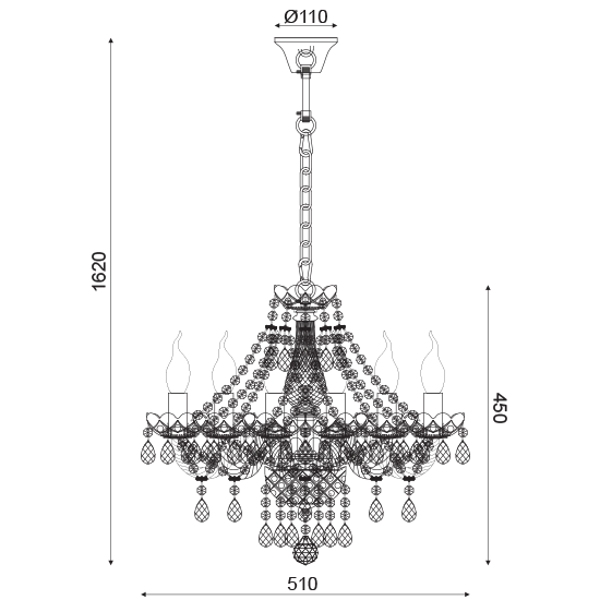 ACA Κρεμαστό Φωτιστικό 6ΧΕ14 Διάφανο Κρύσταλλο + Χρώμιο Μέταλλο Φ51ΧH162cm