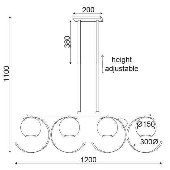 ACA DECOR - Κρεμαστό Φωτιστικό 4ΧΕ27 Χρώμιο Γυαλί + Μέταλλο 70Χ10ΧΗ120cm