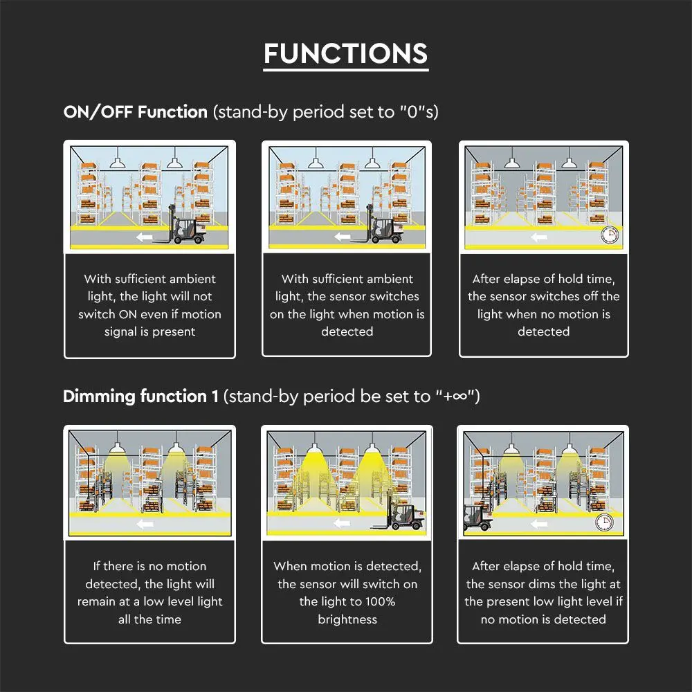 - Υποστηρίζει λειτουργίες υψηλής ευαισθησίας και χαμηλής ευαισθησίας (για μεταλλικές οροφές, περιβάλλοντα μεταλλικών ανακλαστήρων)