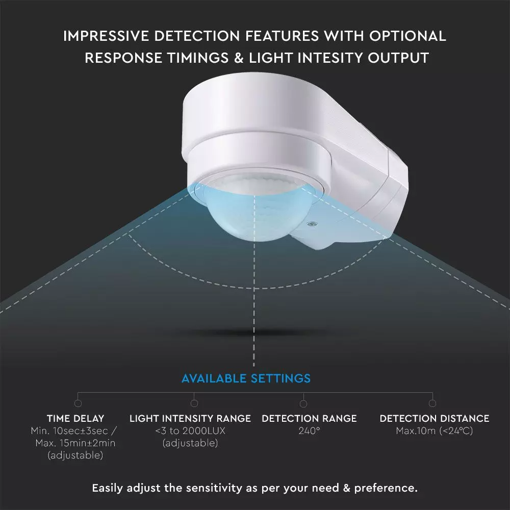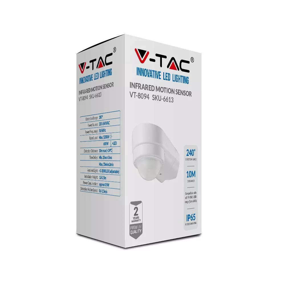Αισθητήρας κίνησης γωνιακός τοίχου λευκό σώμα MAX 600W V-TAC – 6613