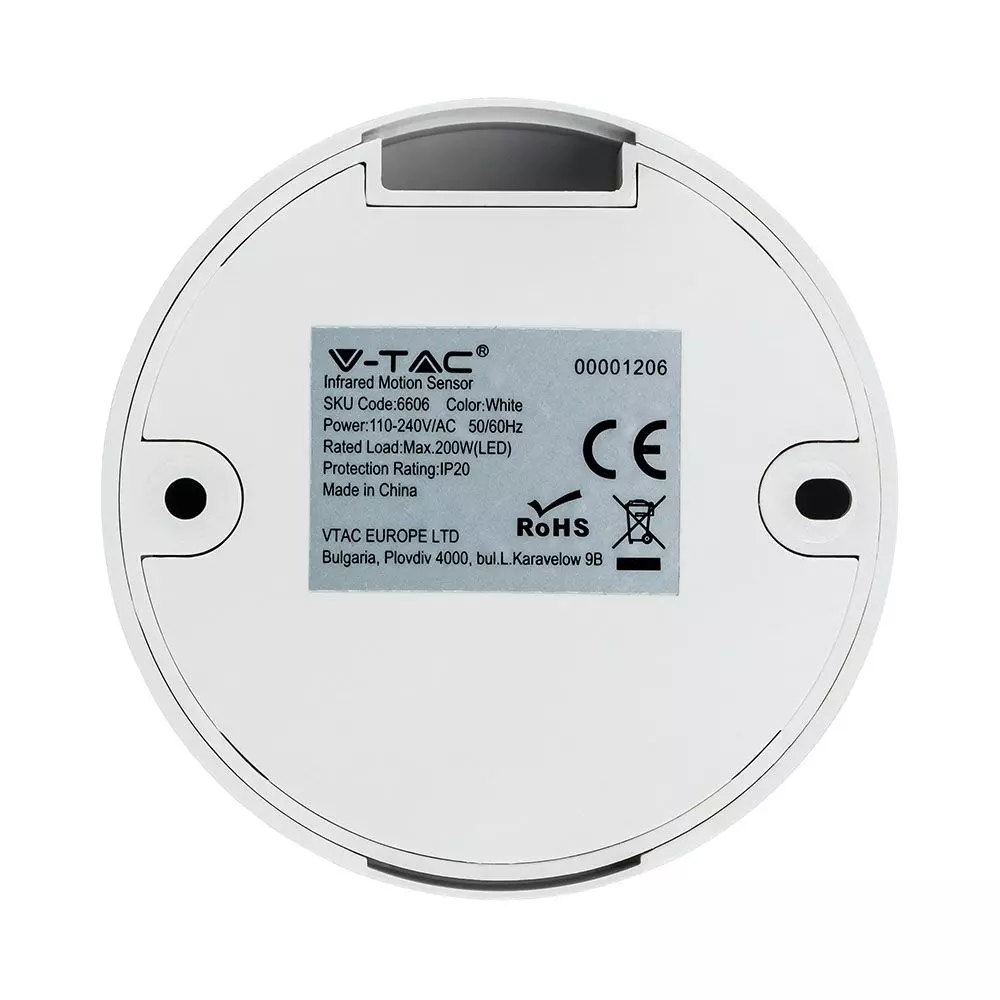 Αισθητήρας κίνησης οροφής λευκό σώμα MAX 200W V-TAC – 6606