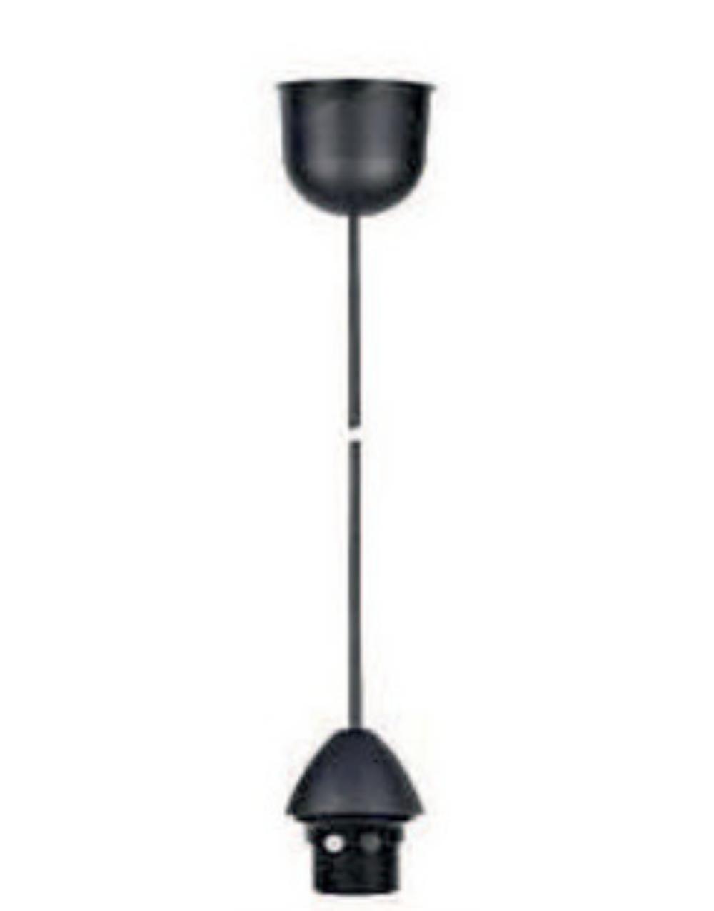 Ανάρτηση με ντουί Ε27 σε μαύρο χρώμα. Το μήκος του καλωδίου είναι 52cm και το υλικό της ροζέτας είναι πλαστικό. O βαθμός στεγανότητας είναι IP20. Εγγύηση 2 έτη από την UNIVERSE.