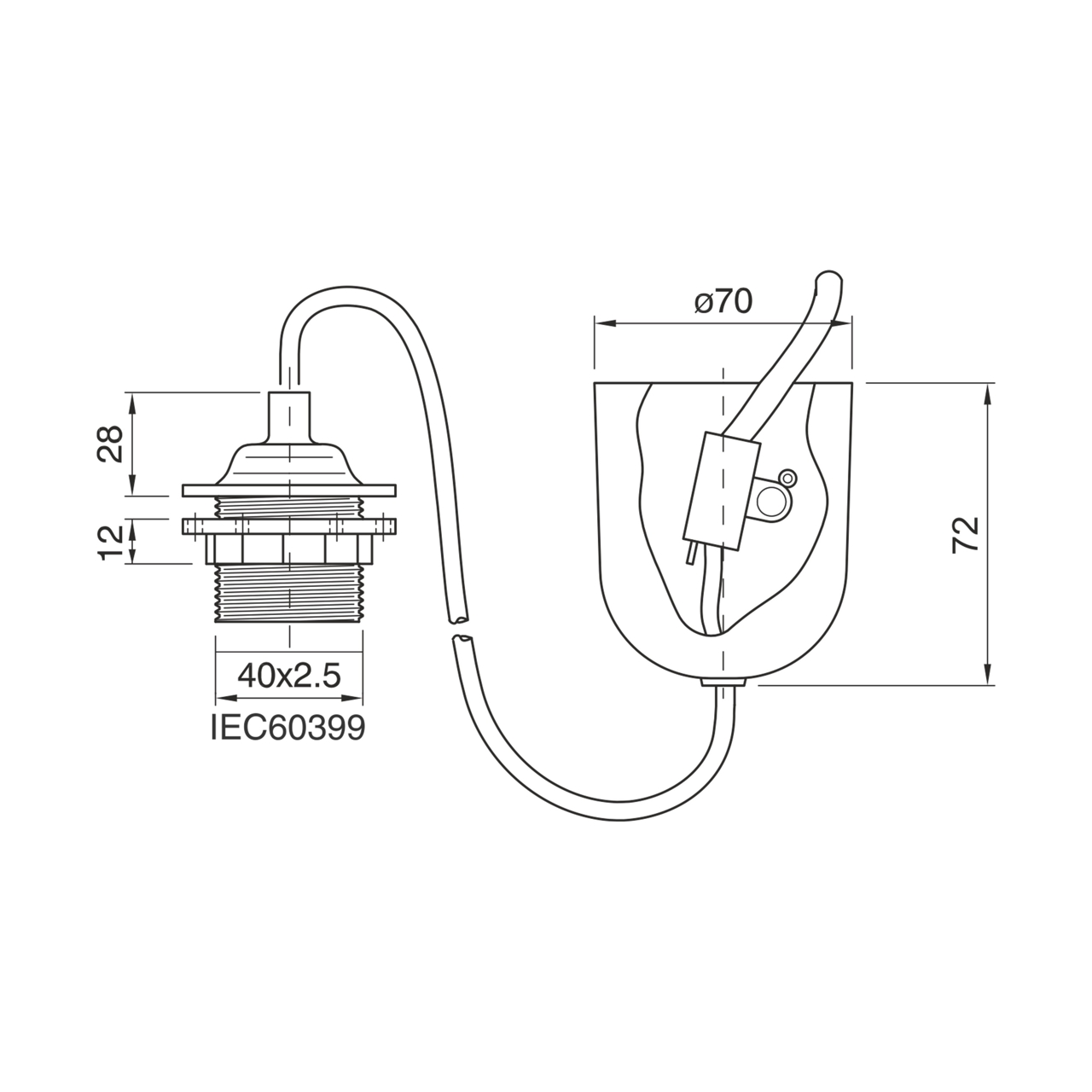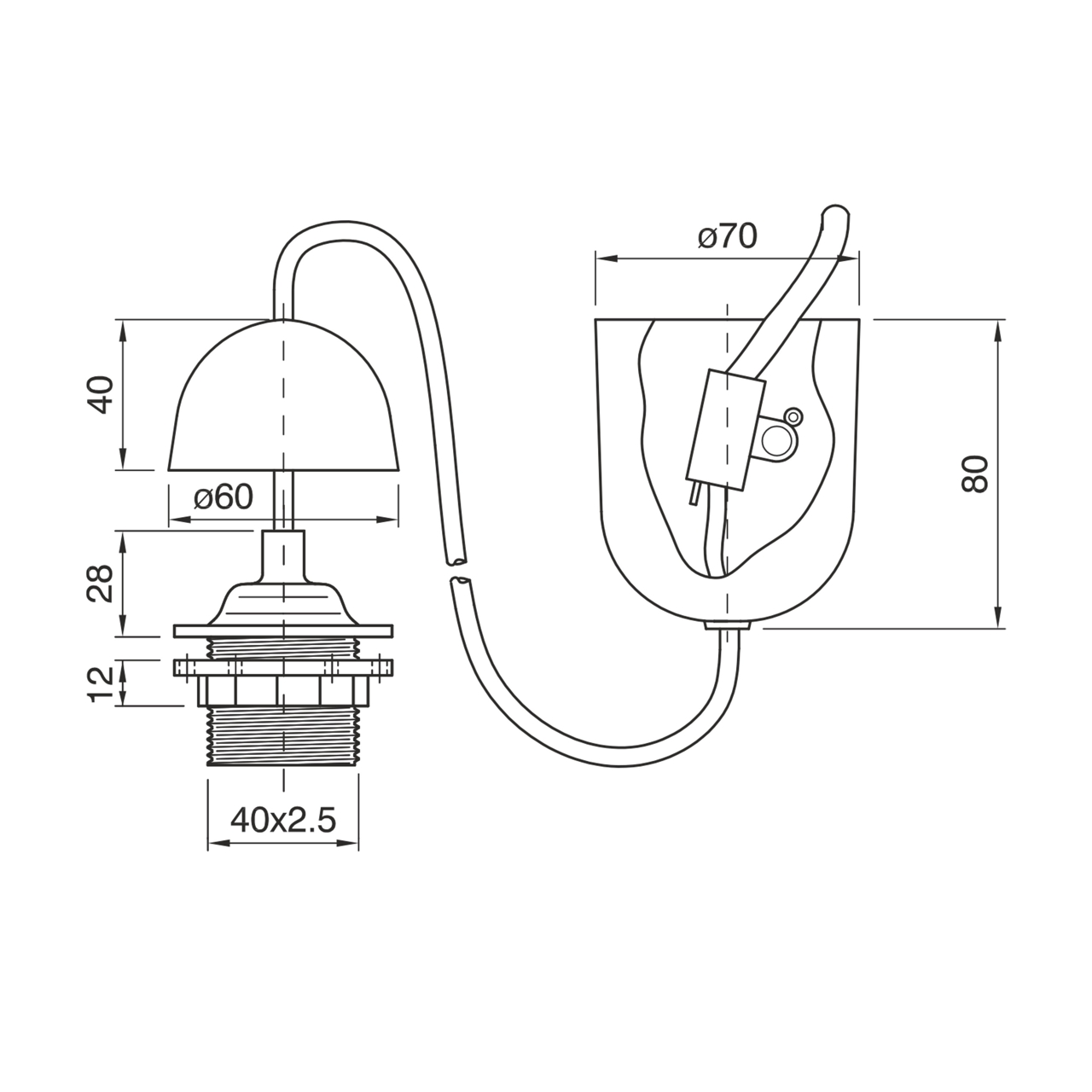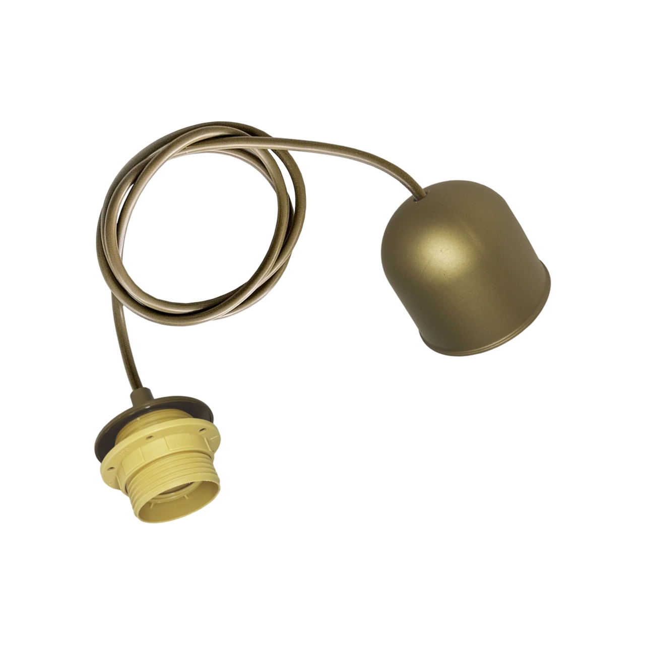 Ανάρτηση με ντουί Ε27 σε χρυσό χρώμα. Το μήκος του καλωδίου είναι 80cm και το υλικό της ροζέτας είναι πλαστικό. O βαθμός στεγανότητας είναι IP20. Εγγύηση 2 έτη από την CUBA LUX.