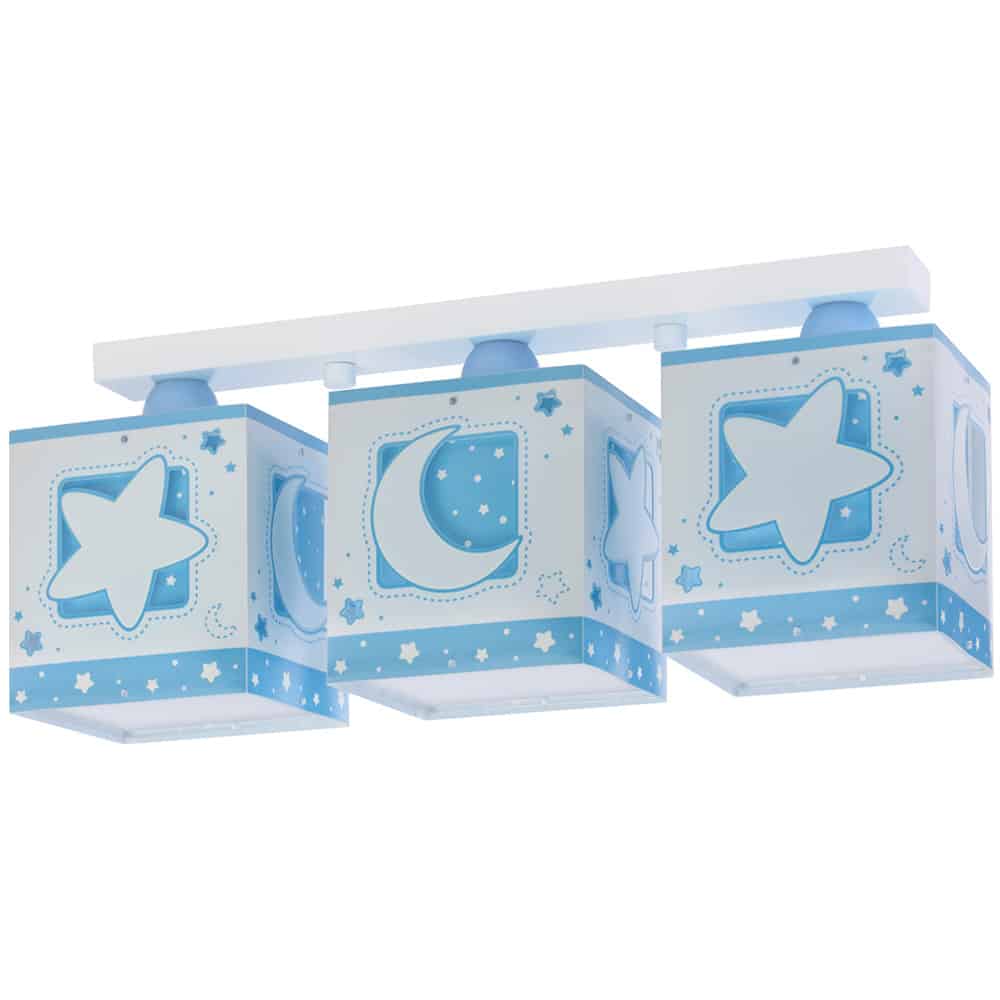 Καλωσορίστε το παιδί σας σε ένα παιδικό δωμάτιο πλημμυρισμένο από μαγεία με αυτό το μοναδικό στο είδος του τρίφωτο φωτιστικό οροφής κατάλληλο για γενικό φωτισμό. Προσθέτει διασκεδαστικό χαρακτήρα και χρώμα σε κάθε παιδικό δωμάτιο. Παρέχει ομοιόμορφο και άπλετο φωτισμό δημιουργώντας περιβάλλον που ενθαρρύνει τα παιδιά να επιδοθούν σε ότι τους αρέσει περισσότερο τόσο στην διασκέδαση όσο και την δημιουργικότητα! Είναι κατασκευασμένο στην Ευρώπη και απόλυτα ασφαλές ώστε τα παιδιά να μπορούν να μελετήσουν, να παίξουν και να κοιμηθούν παρέα με τον αγαπημένο τους ήρωα. Η μαγεία συνεχίζετε ακόμα και στο σκοτάδι με τα φωσφορίζοντα μέρη του στο εξωτερικό τοίχωμα των φωτιστικών του σωμάτων. Το MoonLight Blue τρίφωτο φωτιστικό οροφής σε ράγα συμπληρώνει τα υπόλοιπα παιδικά φωτιστικά της συλλογής.