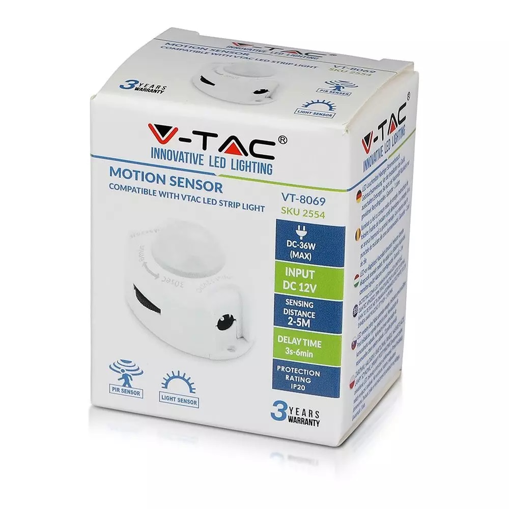 Ανιχνευτής κίνησης 12V για LED ταινίες max 36W Λευκό V-TAC – 2554