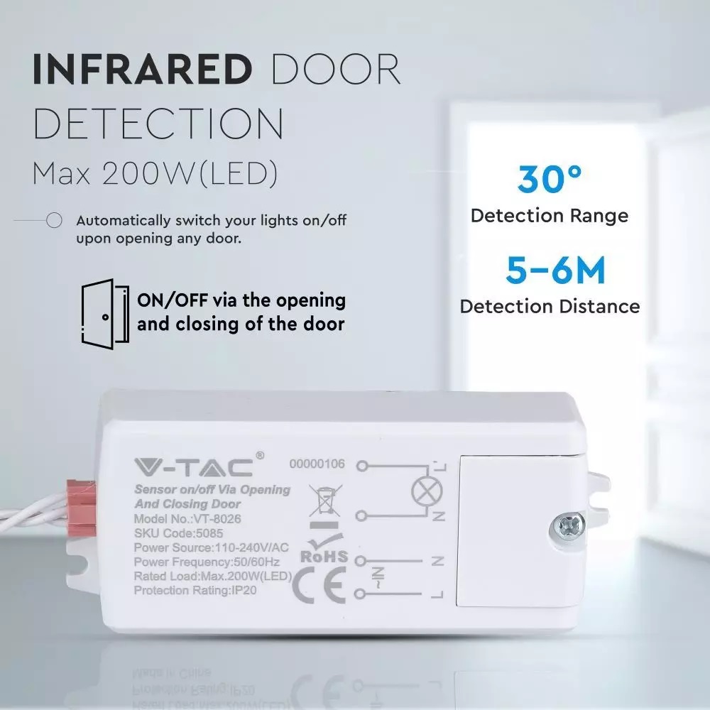 Ανιχνευτής κίνησης πόρτας IR Max 300/500W Λευκό V-TAC – 5085