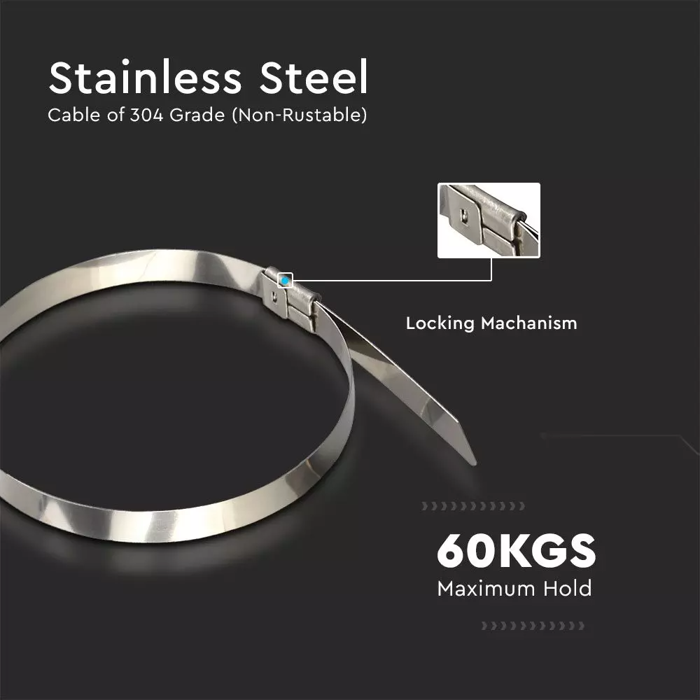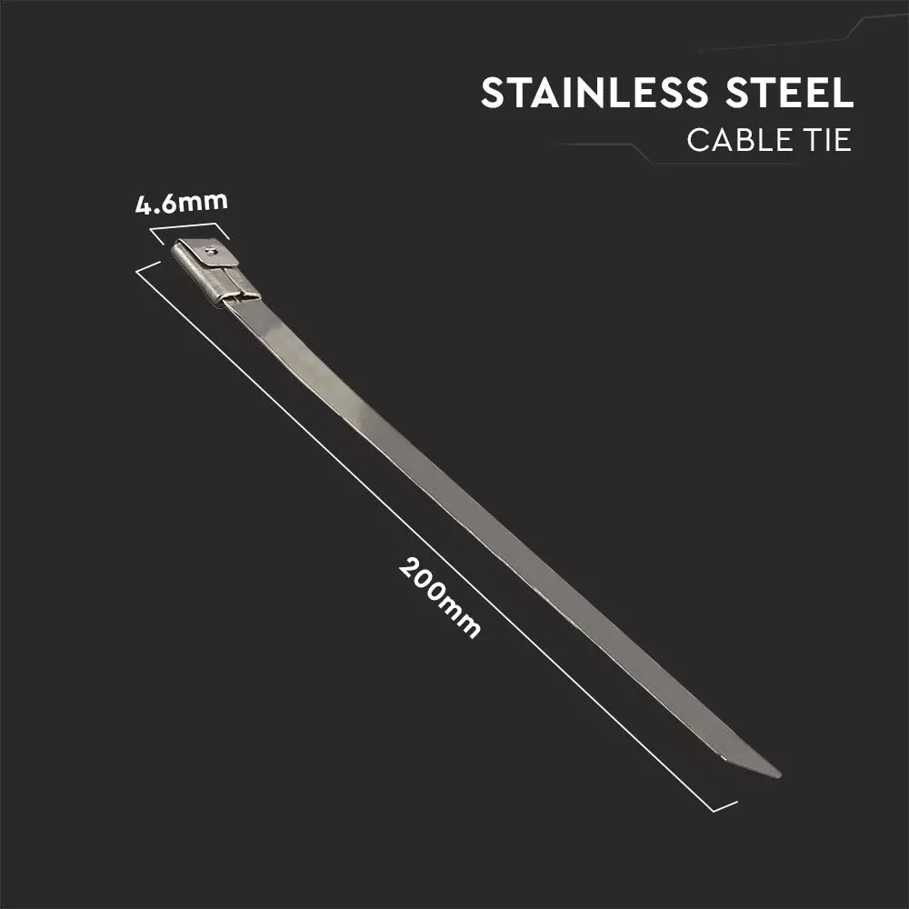 Ανοξείδωτο δεματικό καλωδίων 4.6 x 200mm συσκευασία 100 τεμαχίων V-TAC 11188
