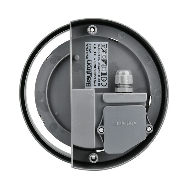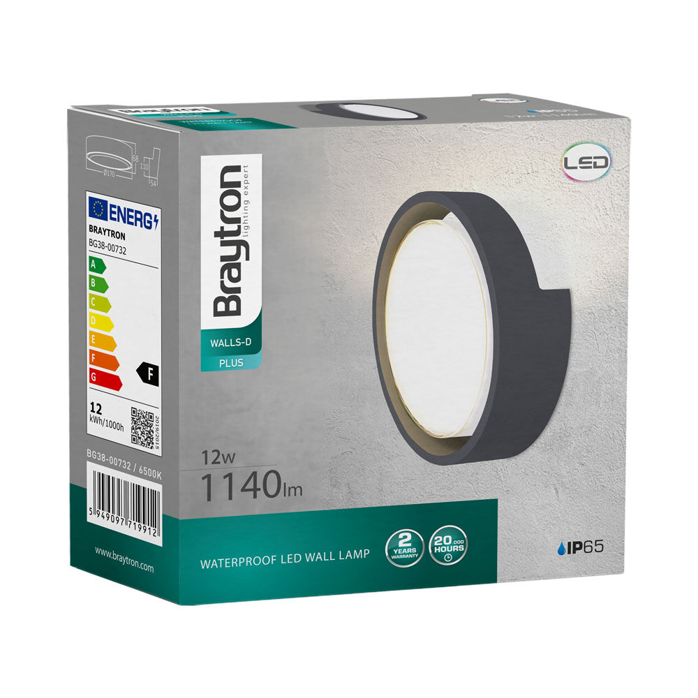 🔸 LED Φωτιστικό Τοίχου Εξωτερικού Χώρου 12 W 6500 K IP65 – BRAYTRON WALLS‑D RND (Γκρι)