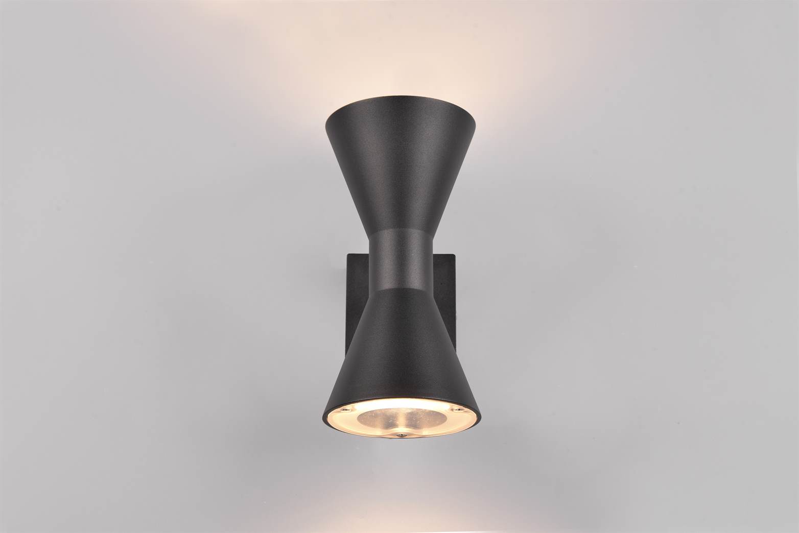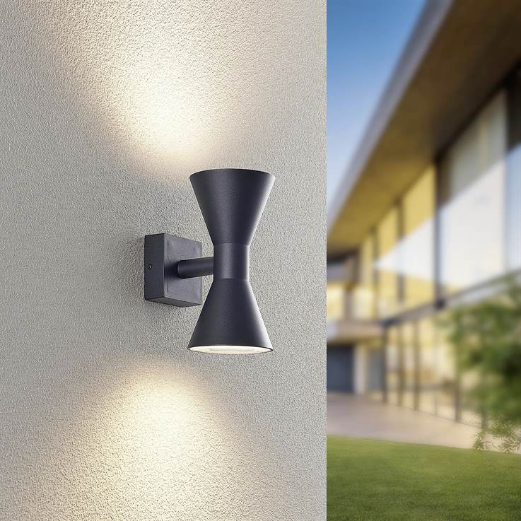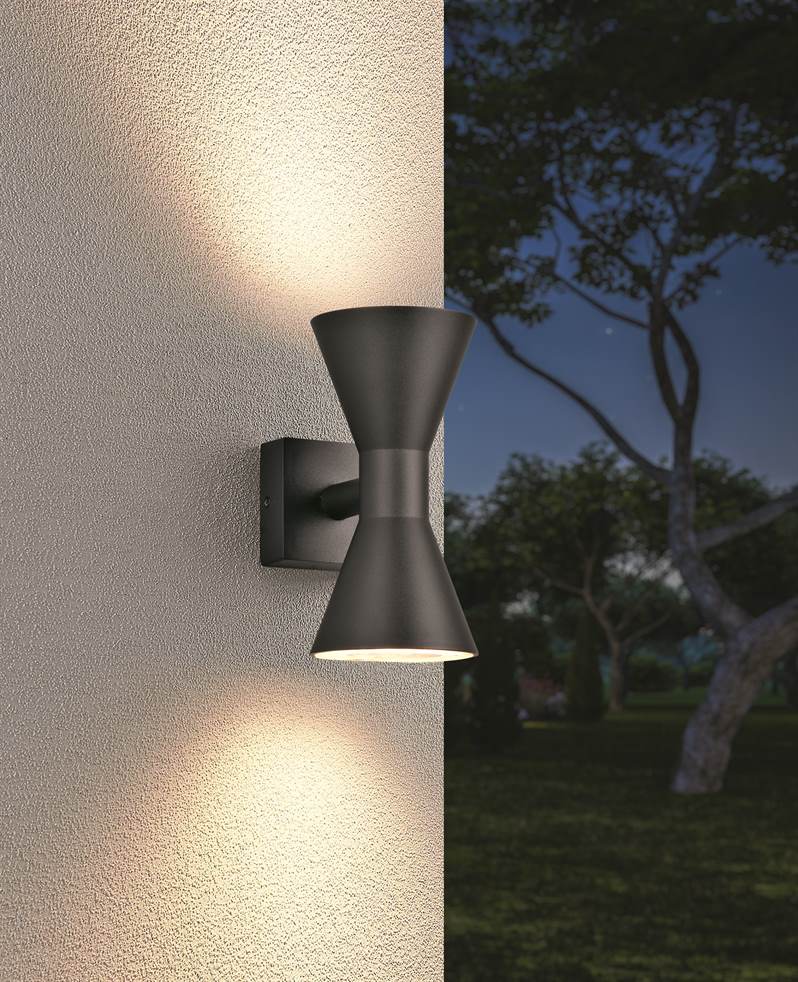 Ο επάνω και κάτω φωτισμός του φωτιστικού τοίχου ARDAS δίνει στοχευμένες διακοσμητικές πινελιές στην πρόσοψη του σπιτιού σας και λούζει τον κήπο, τη βεράντα ή την είσοδο σας σε μια αρμονική ατμόσφαιρα. Η πηγή φωτός όχι μόνο παρέχει διάχυση ατμοσφαιρικού φωτός, αλλά και ασφάλεια καθώς το σκοτάδι αρχίζει να πέφτει γύρω από το σπίτι σας. Χάρη στη βαθμολογία προστασίας IP44 και το στιβαρό σώμα από χυτοπρεσαριστό αλουμίνιο, το φωτιστικό εξωτερικού χώρου αψηφά όλες τις καιρικές συνθήκες. Ο σχεδιασμός της κλεψύδρας και ο κομψός χρωματικός συνδυασμός σε μαύρο ματ θα αναδείξουν τον εξωτερικό χώρο σας με σύγχρονο στυλ. Για φωτισμό εξοικονόμησης ενέργειας, συνιστάται η χρήση φωτιστικού LED. Αυτοί είναι μια βέλτιστη εναλλακτική λύση σε σχέση με τους συμβατικούς λαμπτήρες αλογόνου και αντιπροσωπεύουν υψηλή ποιότητα φωτός και εξοικονόμηση ενέργειας έως και 80%. Επιπλέον, οι λαμπτήρες LED σάς βοηθούν να επωφεληθείτε από τη μεγάλη διάρκεια ζωής, τη χαμηλή παραγωγή θερμότητας και ταυτόχρονα την προστασία του περιβάλλοντος.