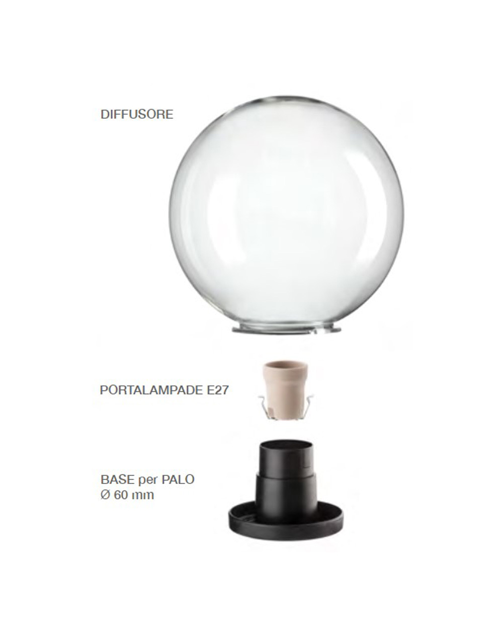 Μπάλα ακρυλική Φ300. Είναι πρισματική και ο βαθμός στεγανότητας είναι IP65. H χώρα προέλευσης είναι η Ιταλία. 2 χρόνια εγγύηση από την ACRILUX.