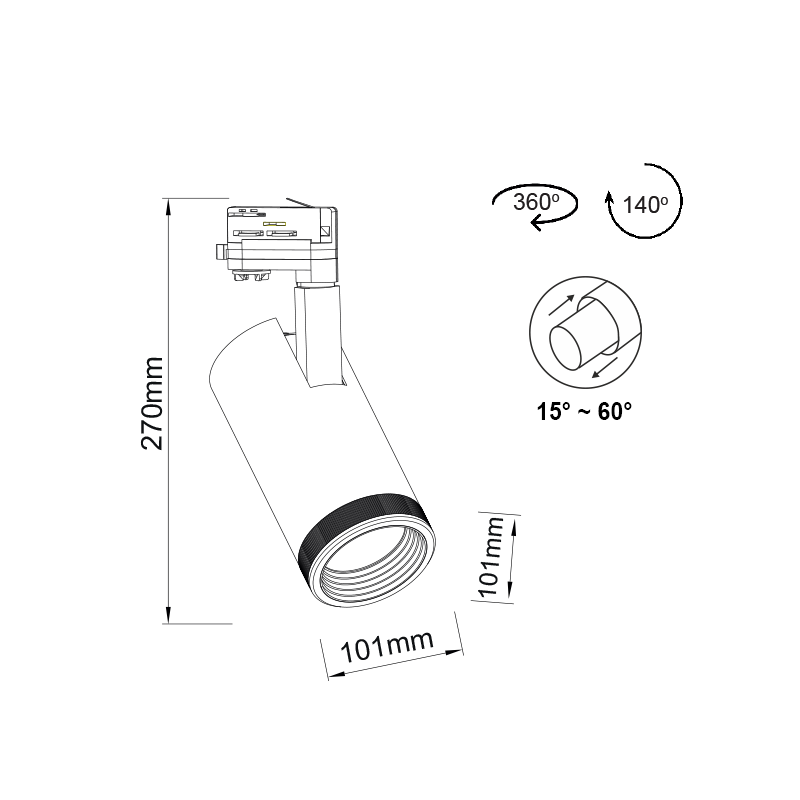 Μοίρες φωτισμού : 15-35-60°