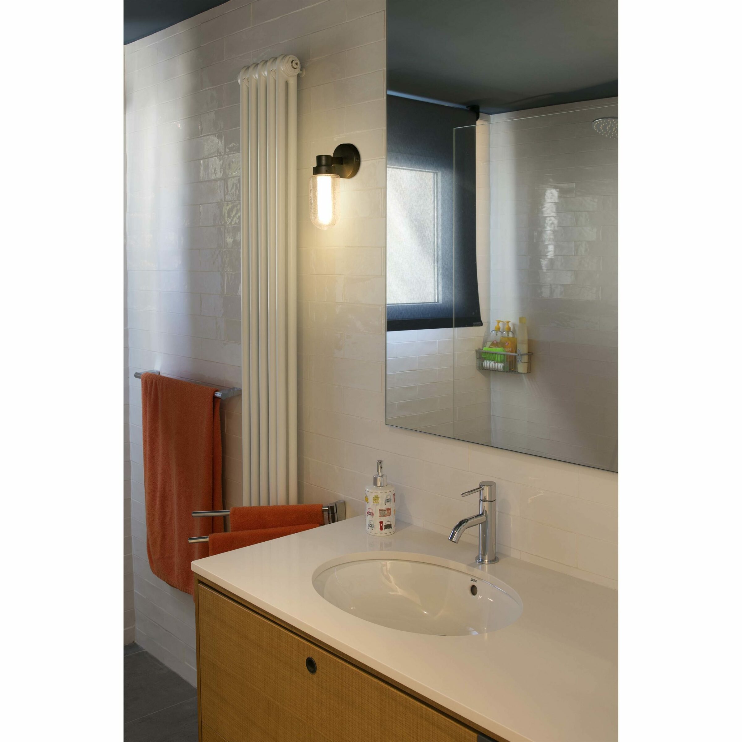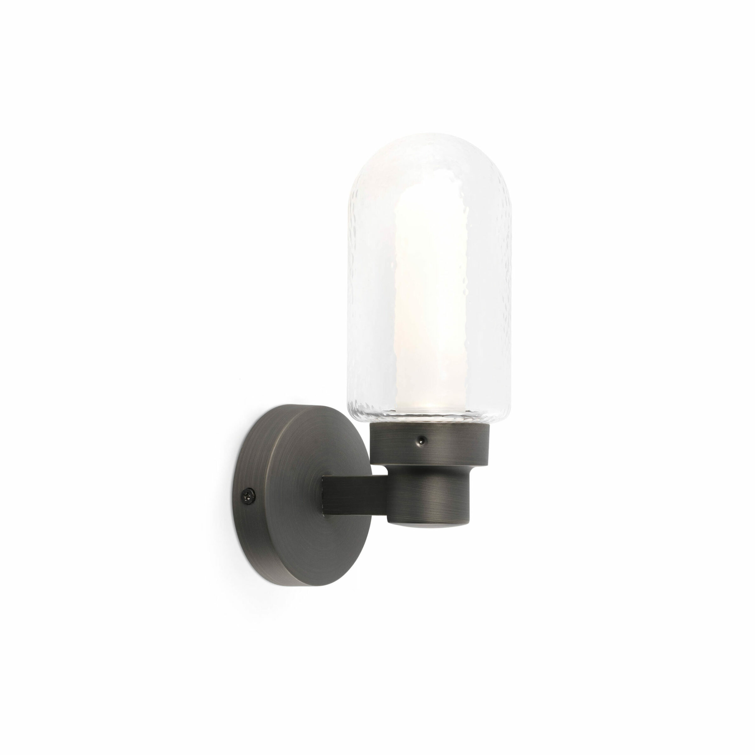 BRUME is a collection of lamps for the bathroom designed by Alex&Manel Lluscà. Its design is simple and elegant thanks to the composition of its shades. The exterior is transparent glass and the interior is opaque. This wall lamp is ideal for placing near a mirror.