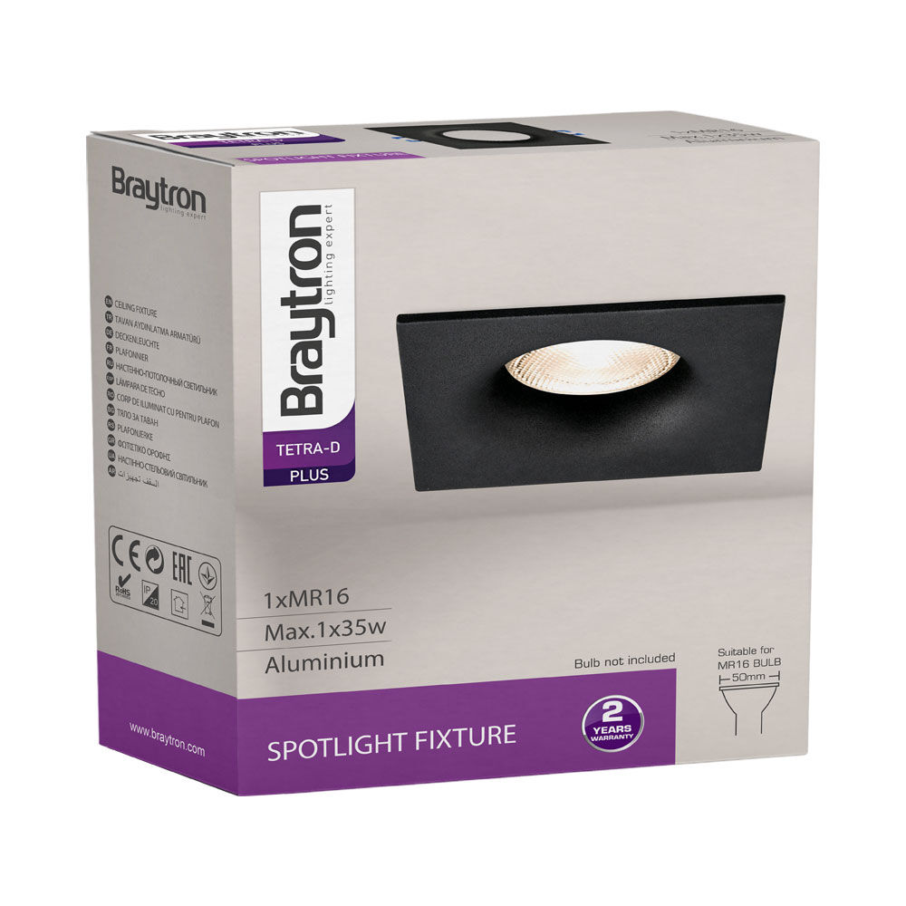 💡 Χωνευτό Spot Φωτιστικό Braytron Tetra‑D SQR Μαύρο GU10 IP20