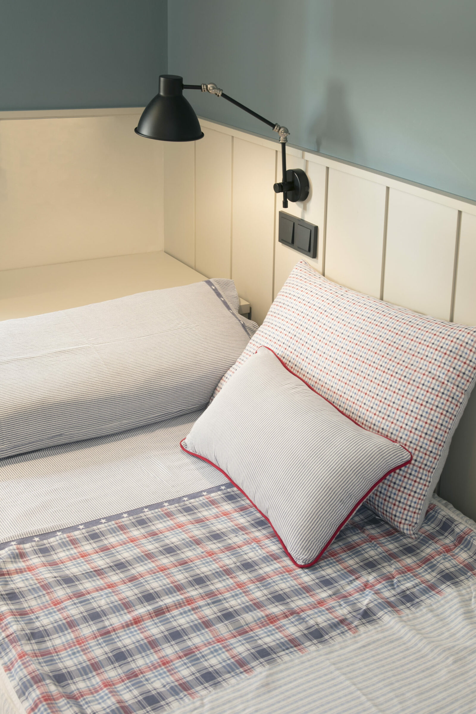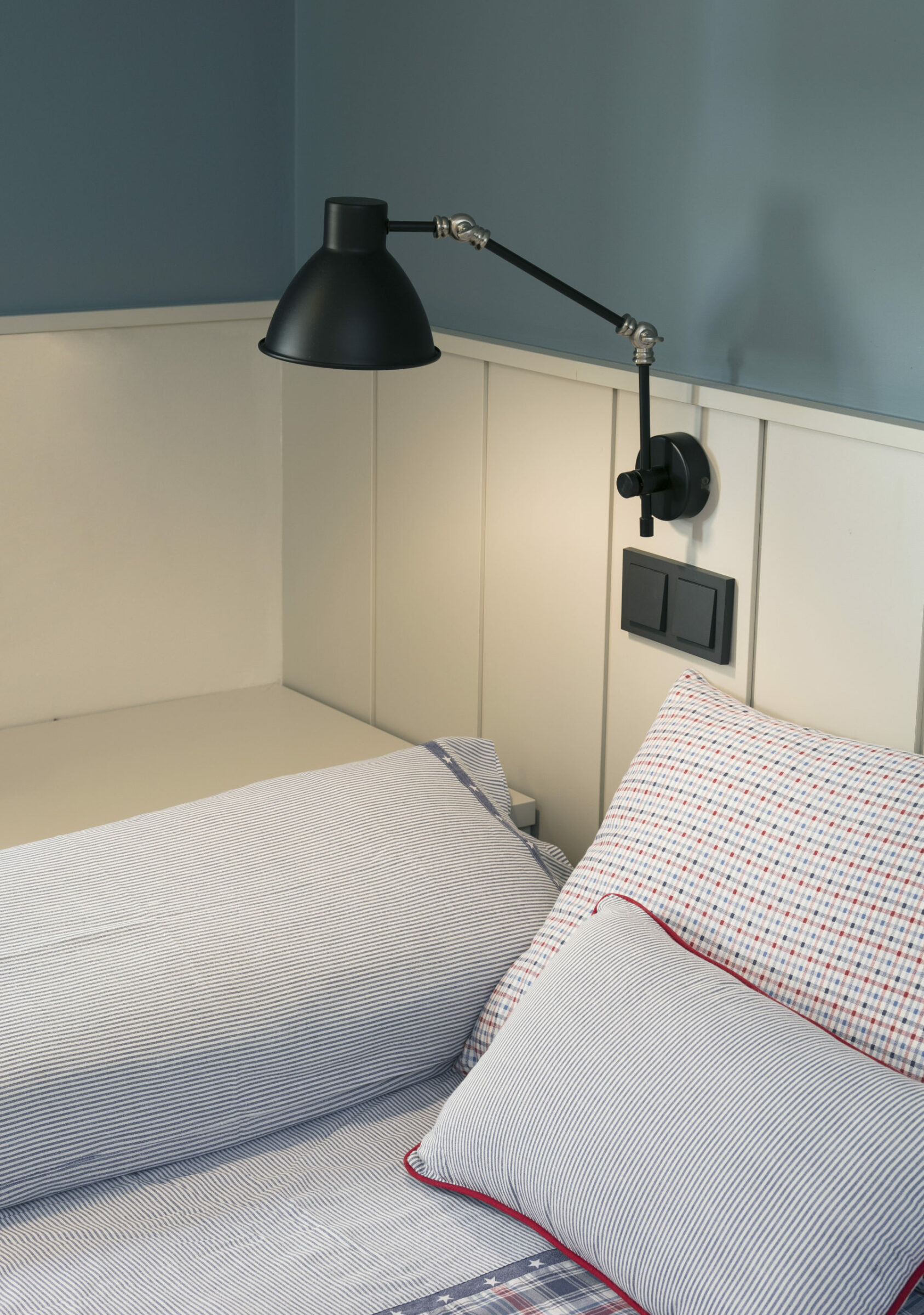 Articulated wall lamp, black matt finish. Built in metal and steel. This wall lamp is ideal to light up the reading corner at your home.