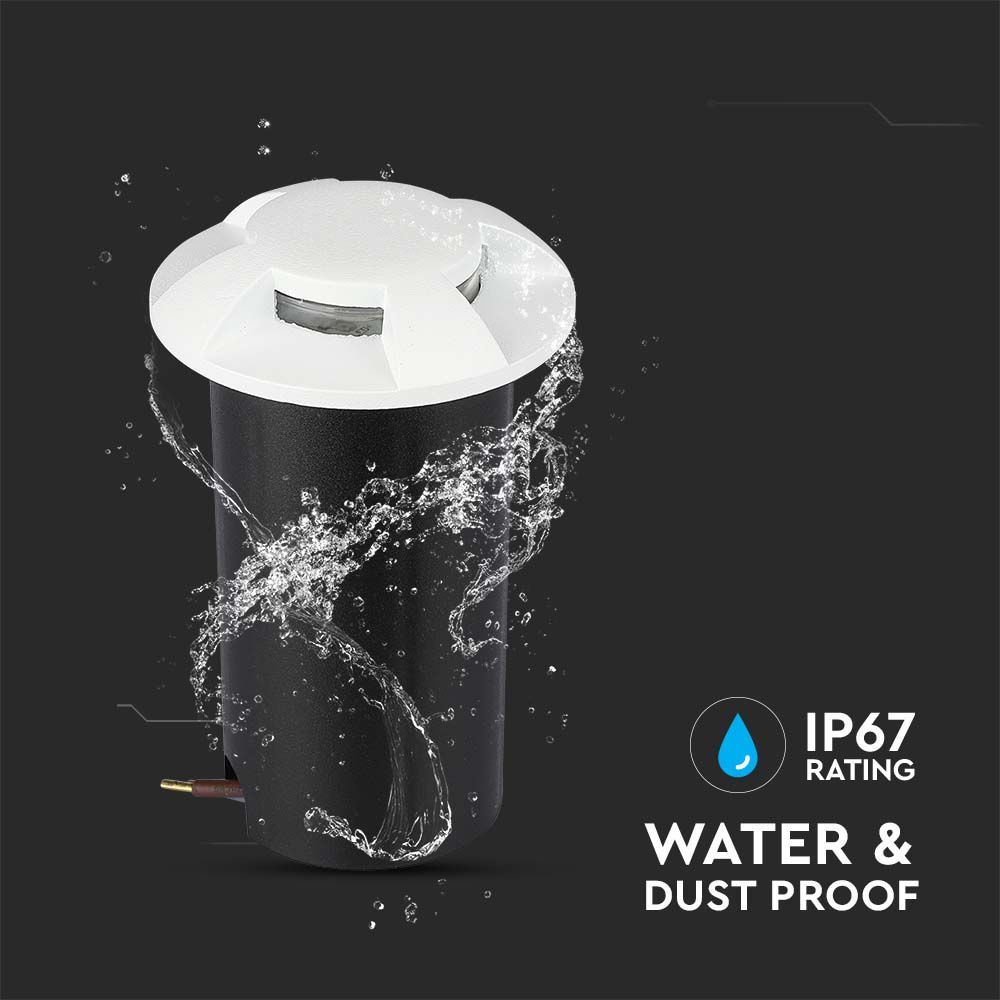 Χωνευτό Φωτιστικό Δαπέδου LED 1W Στρογγυλό Λευκο V-TAC IP67 12V με 4 Δέσμες Θερμό Λευκό 3000K- 211469