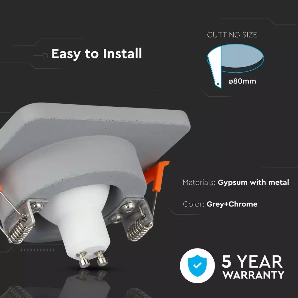 Χωνευτό φωτιστικό Spot GU10 γύψινο τετράγωνο με γκρι & χρώμιο σώμα V-TAC – 3120
