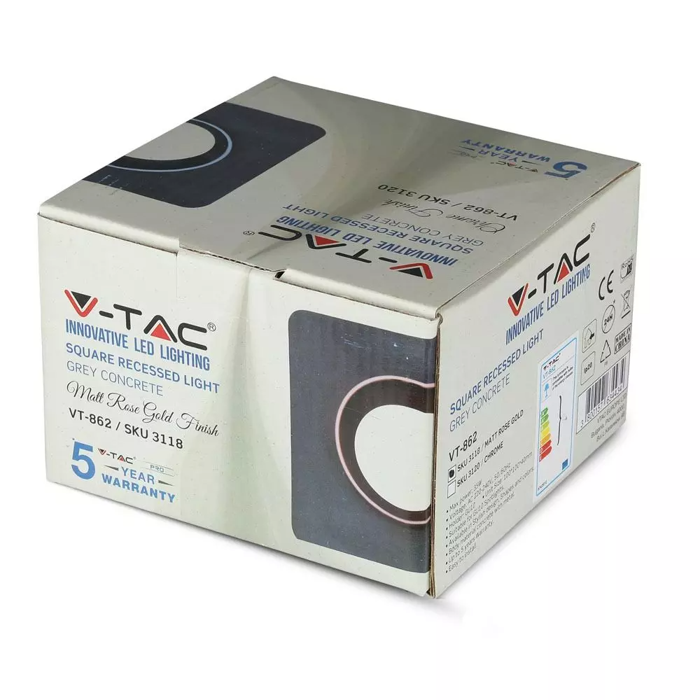 Χωνευτό φωτιστικό Spot GU10 γύψινο τετράγωνο με γκρι & ροζ χαλκος V-TAC – 3118