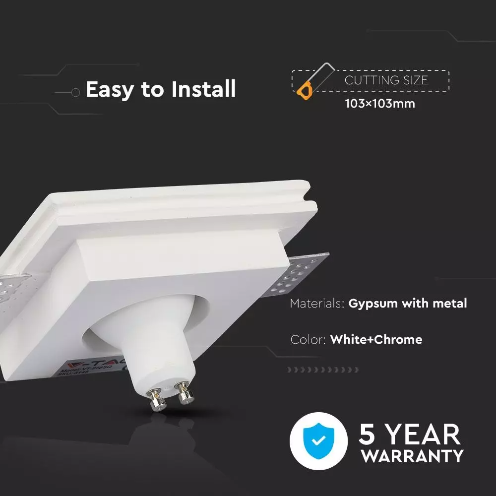 Χωνευτό φωτιστικό Spot GU10 Γύψινο Τετράγωνο με λευκό & χρώμιο σώμα V-TAC – 3149
