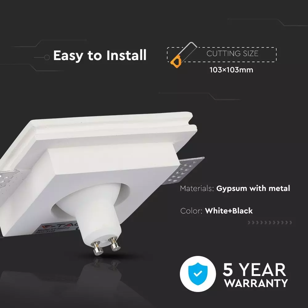 Χωνευτό φωτιστικό Spot GU10 Γύψινο Τετράγωνο με λευκό & μαύρο σώμα V-TAC – 3148