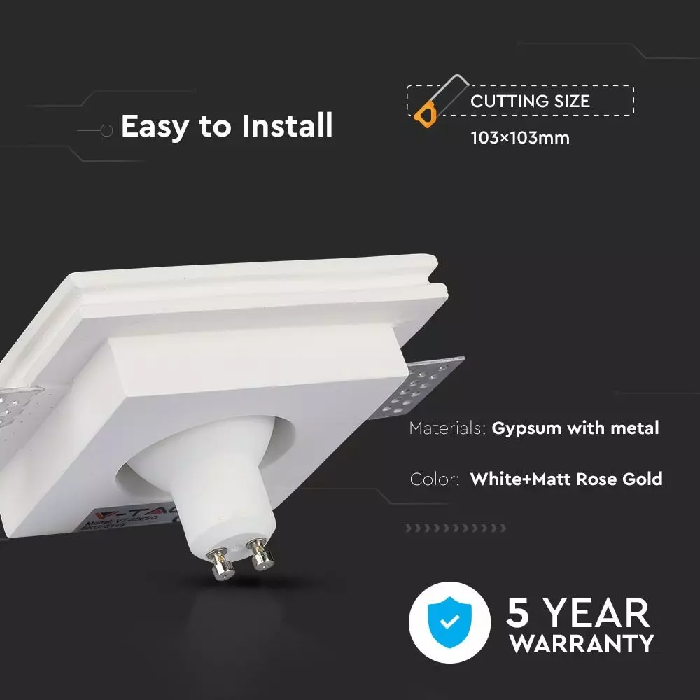 Χωνευτό φωτιστικό Spot GU10 Γύψινο Τετράγωνο με λευκό & ροζ χαλκός σώμα V-TAC – 3150