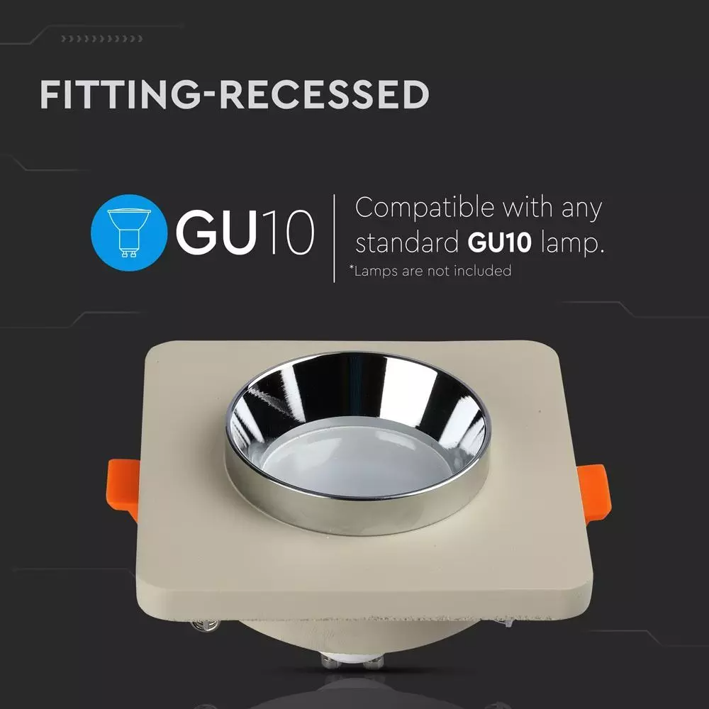 Χωνευτό φωτιστικό Spot GU10 γύψινο τετράγωνο με υπόλευκο & χρώμιο σώμα V-TAC – 3122