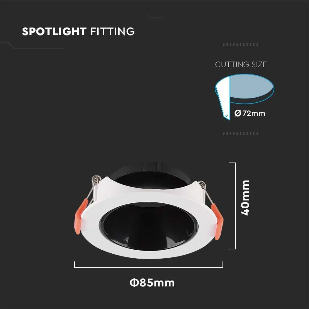 Χωνευτό φωτιστικό Spot GU10 στρογγυλό λευκό με μαύρο ανακλαστήρα V-TAC – 6645
