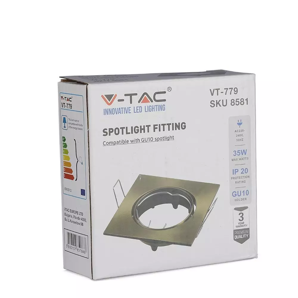 Χωνευτό φωτιστικό Spot GU10, τετράγωνο χρυσό σώμα V-TAC – 8581