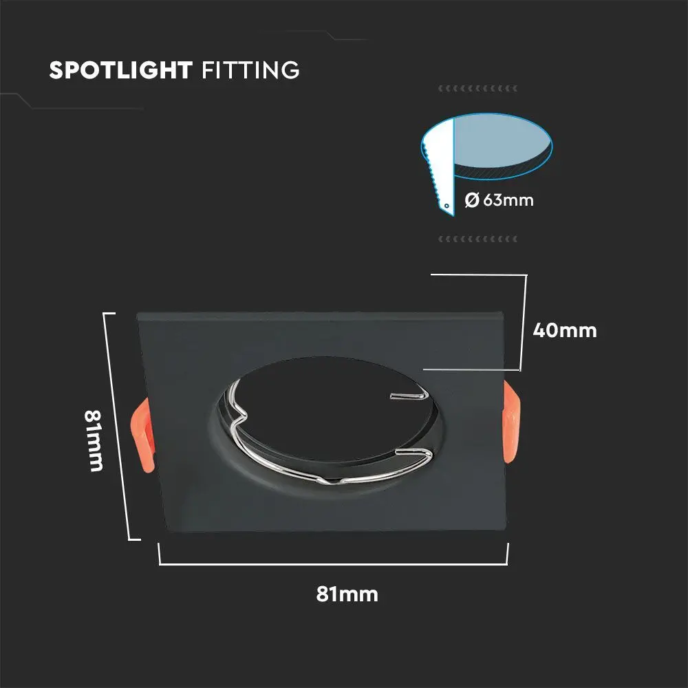 Χωνευτό φωτιστικό Spot GU10 τετράγωνο μαύρο 2 τμχ. V-TAC – 6643