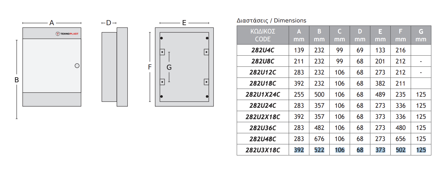 Χωνευτός Πίνακας 54 Θέσεων 3 Σειρών με Διάφανη Πλαστική Πόρτα IP40 Πλαστικό Πλαίσιο ACA – 282U3X18C