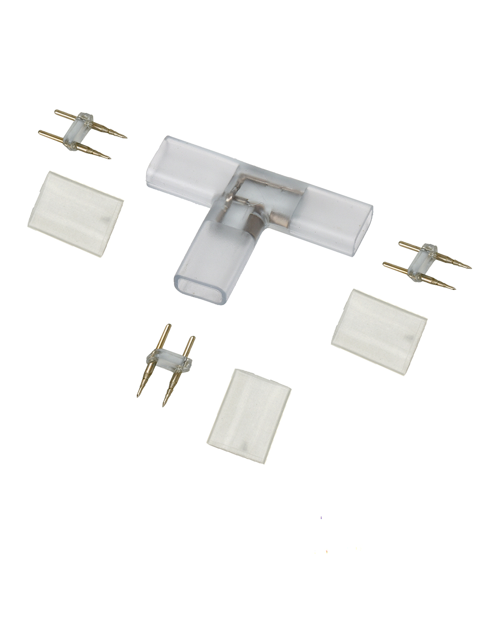 Σύνδεσμος Τ 2 επαφών για COB 288 led ταινία. Στην συσκευασία περιλαμβάνονται 2 θερμοσυστελλόμενα και 2 pin 2 επαφών.