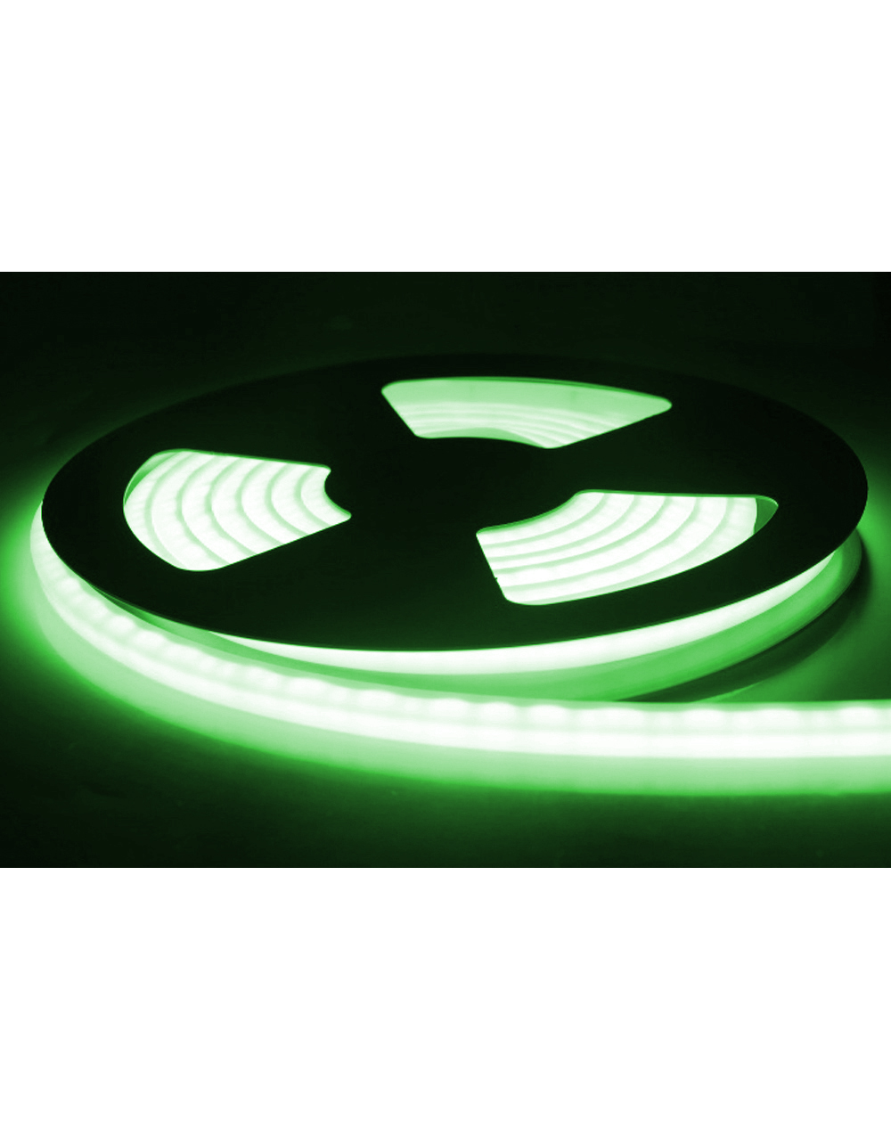 Ταινία LED cube neon flex με τάση τροφοδοσίας 24V και ονομαστική ισχύς ανά μέτρο 13W. Η θερμοκρασία χρώματος είναι πράσινο. Ο βαθμός στεγανότητας είναι IP65, η γωνια δέσμης 220 μοίρες και η διάρκεια ζωής της ταινία είναι 35000h. Ο τύπος LED είναι SMD2835 και σε κάθε μέτρο υπάρχουν 120 LED. Τα σημεία κοψίματος της ταινίας βρίσκονται κάθε 5 εκατοστά και ο τρόπος κάμψης της είναι top bending. Η κάθε σακούλα διαθέτει 5 μέτρα ταινίας