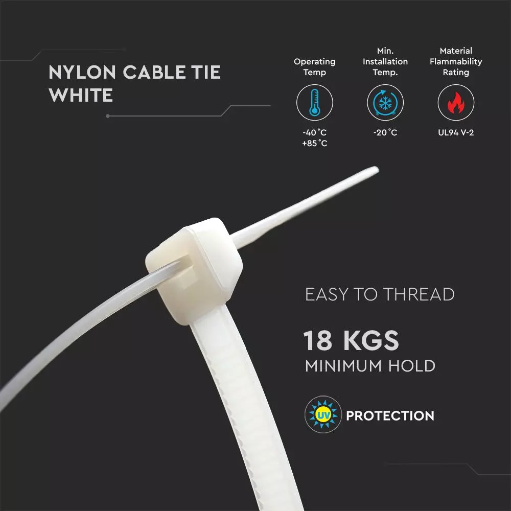 Δεματικό καλωδίων – tie wrap, 3.5 x 200mm σε λευκό χρώμα, συσκευασία 100 τεμαχίων V-TAC – 11167