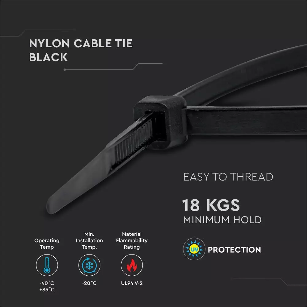 Δεματικό καλωδίων – tie wrap, 3.5 x 200mm σε μαύρο χρώμα, συσκευασία 100 τεμαχίων V-TAC – 11168