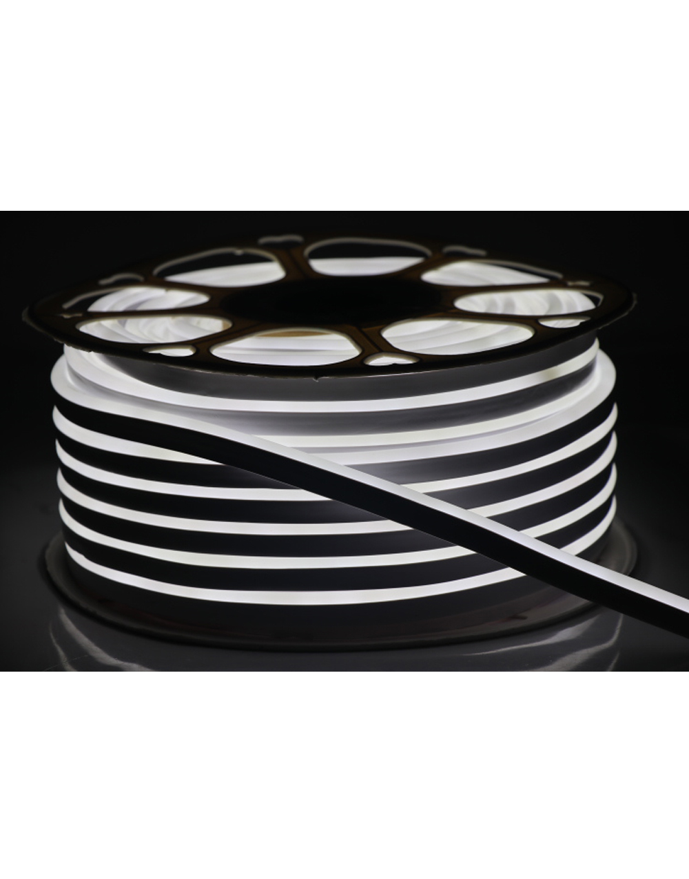 Ταινία LED Dome neon flex με τάση τροφοδοσίας 220-240V και ονομαστική ισχύς ανά μέτρο 8W. Η θερμοκρασία χρώματος είναι 6000Κ και η απόδοση ανά μέτρο 900lm. Ο βαθμός στεγανότητας είναι IP65, η γωνια δέσμης 160 μοίρες και η διάρκεια ζωής της ταινία είναι 25000h. Ο τύπος LED είναι SMD2835 και σε κάθε μέτρο υπάρχουν 120 LED. Τα σημεία κοψίματος της ταινίας βρίσκονται κάθε 1 μέτρο και ο τρόπος κάμψης της είναι side bending. Το κάθε καρούλι διαθέτει 50 μέτρα ταινίας.