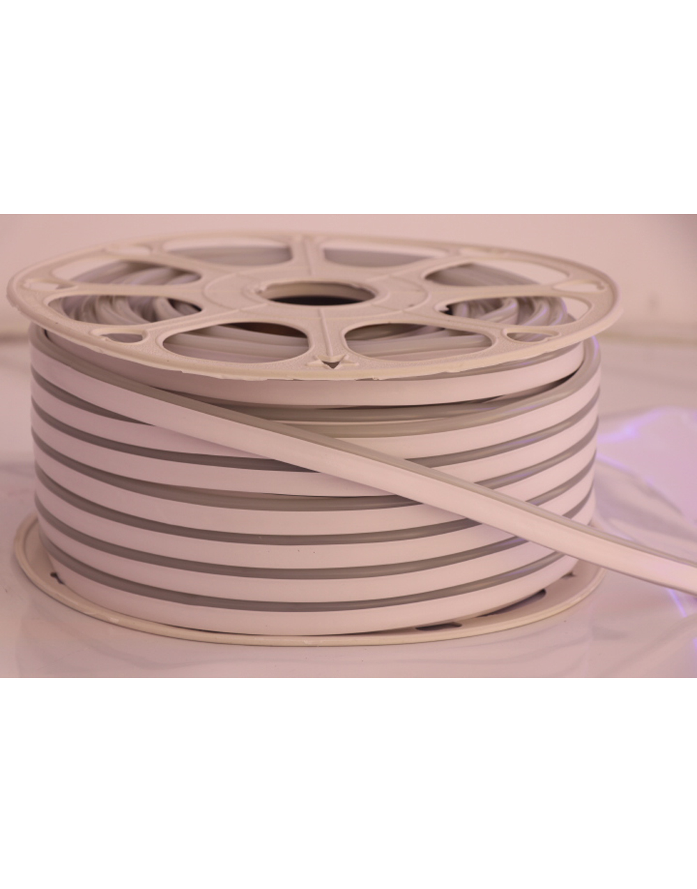 Ταινία LED Dome neon flex με τάση τροφοδοσίας 220-240V και ονομαστική ισχύς ανά μέτρο 8W. Η θερμοκρασία χρώματος είναι μπλε και η απόδοση ανά μέτρο 900lm. Ο βαθμός στεγανότητας είναι IP65, η γωνια δέσμης 160 μοίρες και η διάρκεια ζωής της ταινία είναι 25000h. Ο τύπος LED είναι SMD2835 και σε κάθε μέτρο υπάρχουν 120 LED. Τα σημεία κοψίματος της ταινίας βρίσκονται κάθε 1 μέτρο και ο τρόπος κάμψης της είναι side bending. Το κάθε καρούλι διαθέτει 50 μέτρα ταινίας.