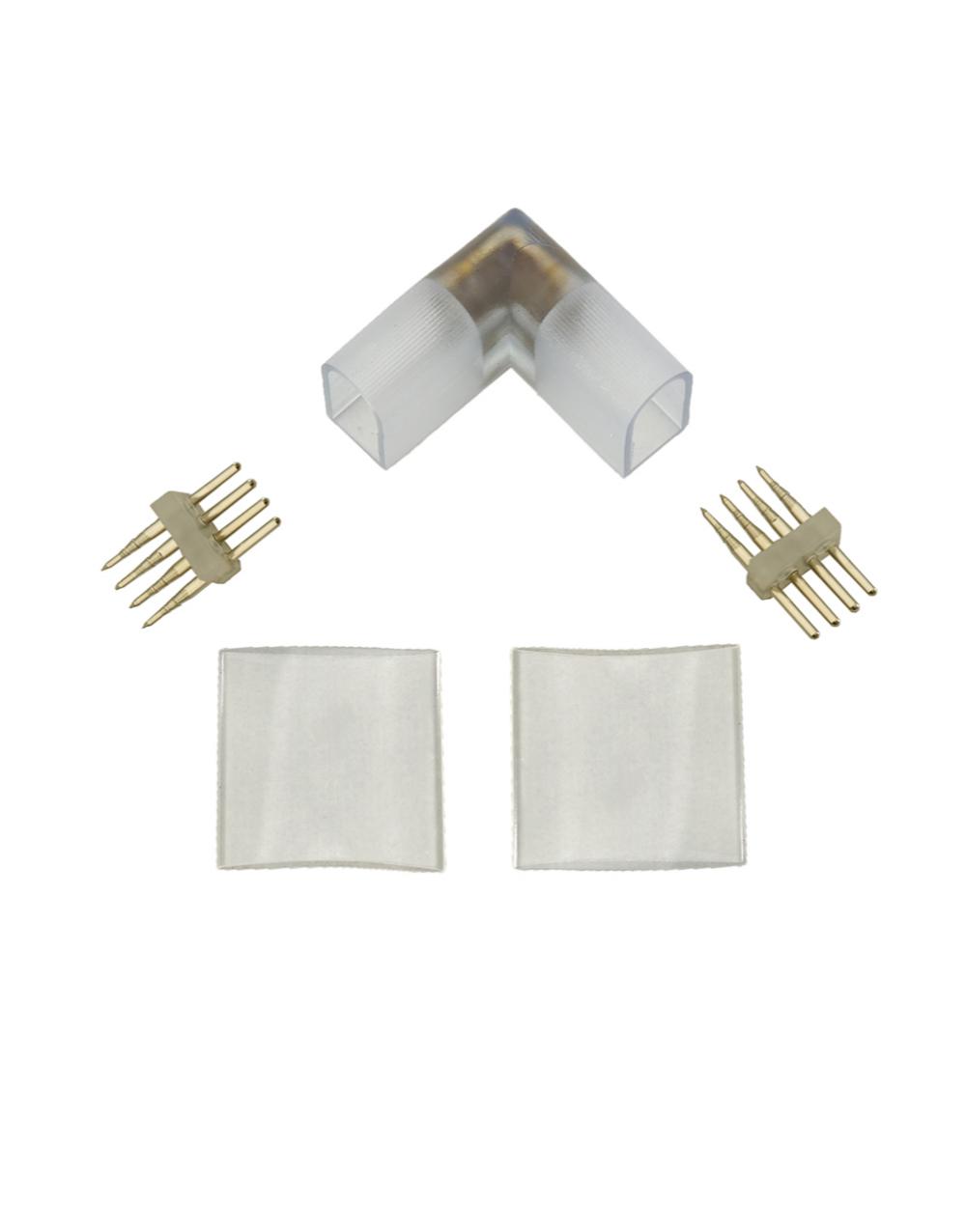 Συνδεσμος γωνίας 90μοιρων (L) για Dome RGB led ταινία 4 επαφών. Στην συσκευασία περιλαμβάνονται 2 θερμοσυστελλόμενα και 3 pin 4 επαφών.